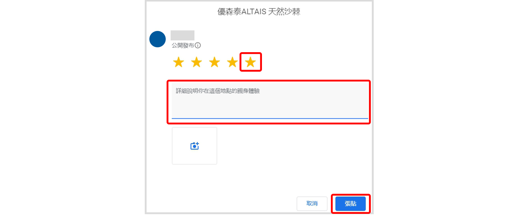 Step 2. 點擊「五星並填寫您對優森泰回饋評論」、點擊「張貼」,即完成評論。