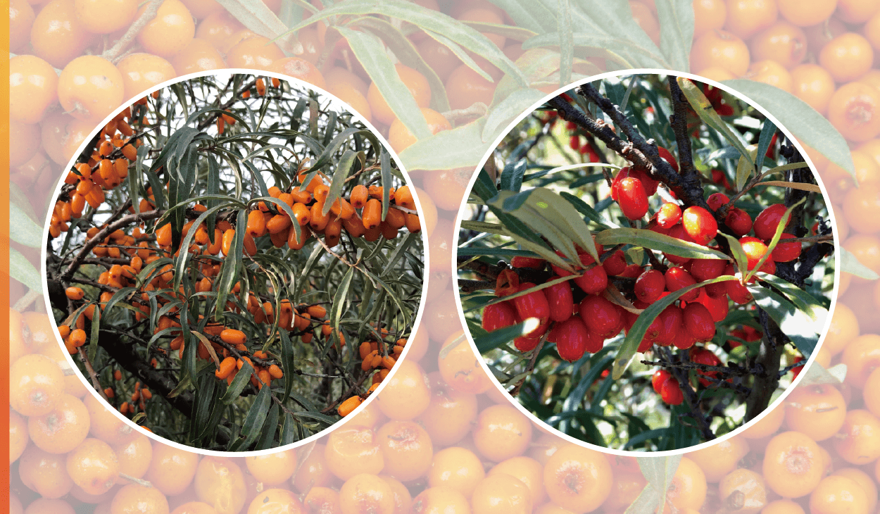 沙棘(Sea Buckthorn)是帶有棘刺的落葉灌木,原產於亞洲和歐洲的溫帶、寒帶地區,品種達18種之多。沙棘果實屬於小漿果類,呈橘紅顏色,性溫,酸甜適口,有淡橘香味。蒙古、俄羅斯等高緯度地區的沙棘營養成分較豐富,屬於大果沙棘,特色是少刺、果實大,含油量較高。沙棘的營養品質隨著果實而成熟,而他受到土壤中的養分、天氣、日照時間、溫度和降雨等因素影響。