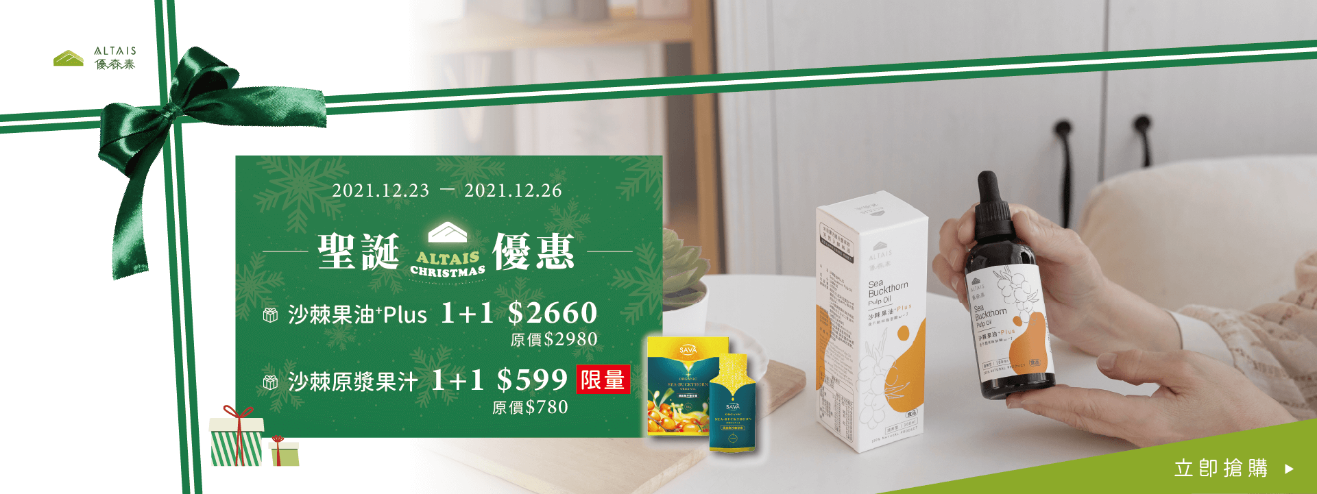 【限時4天】聖誕雙重優惠 沙棘果油1+1 $2660、沙棘原漿果汁1+1$599