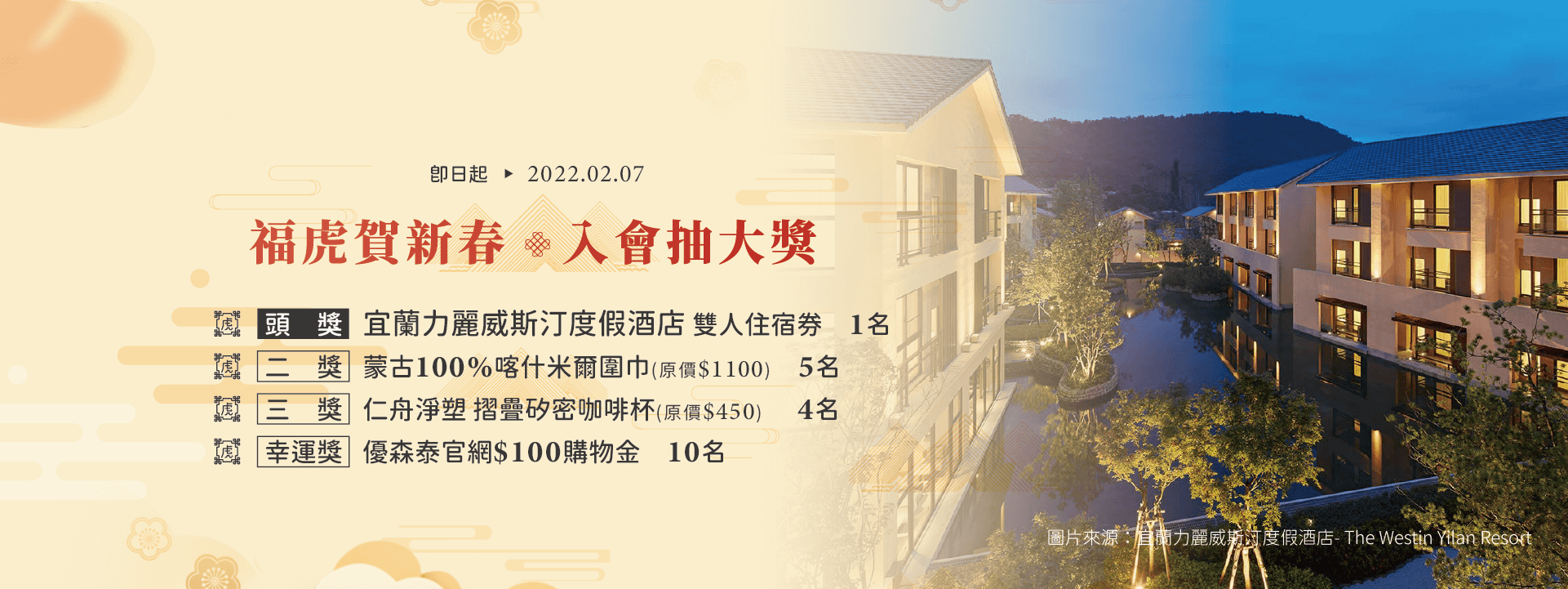 【入會抽大獎】虎年新春!送你入住宜蘭威斯汀度假酒店