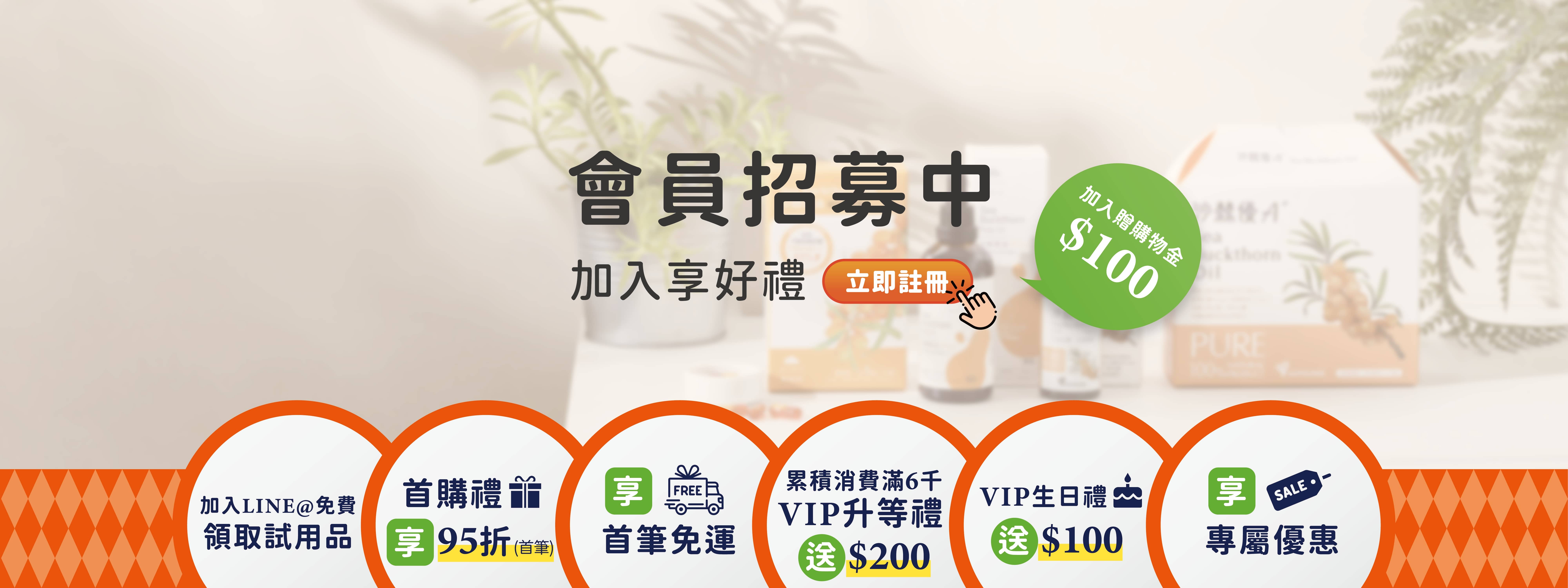 即日起,註冊官網會員即可獲得入會購物金$100,