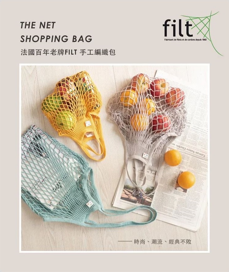 單筆消費滿NT$3,600元,再贈超時尚環保配件-法國的Filt經典手工編織袋(原價NT$510元),數量有限,顏色隨機贈送,送完為止!