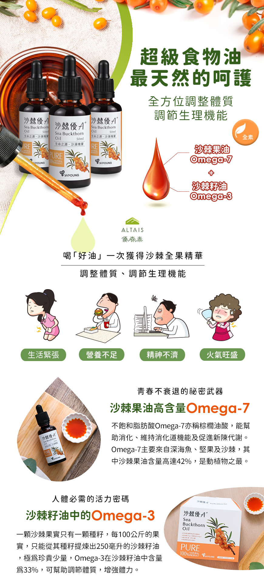 🌱 沙棘籽油Omega-3高達33%!調節生理機能