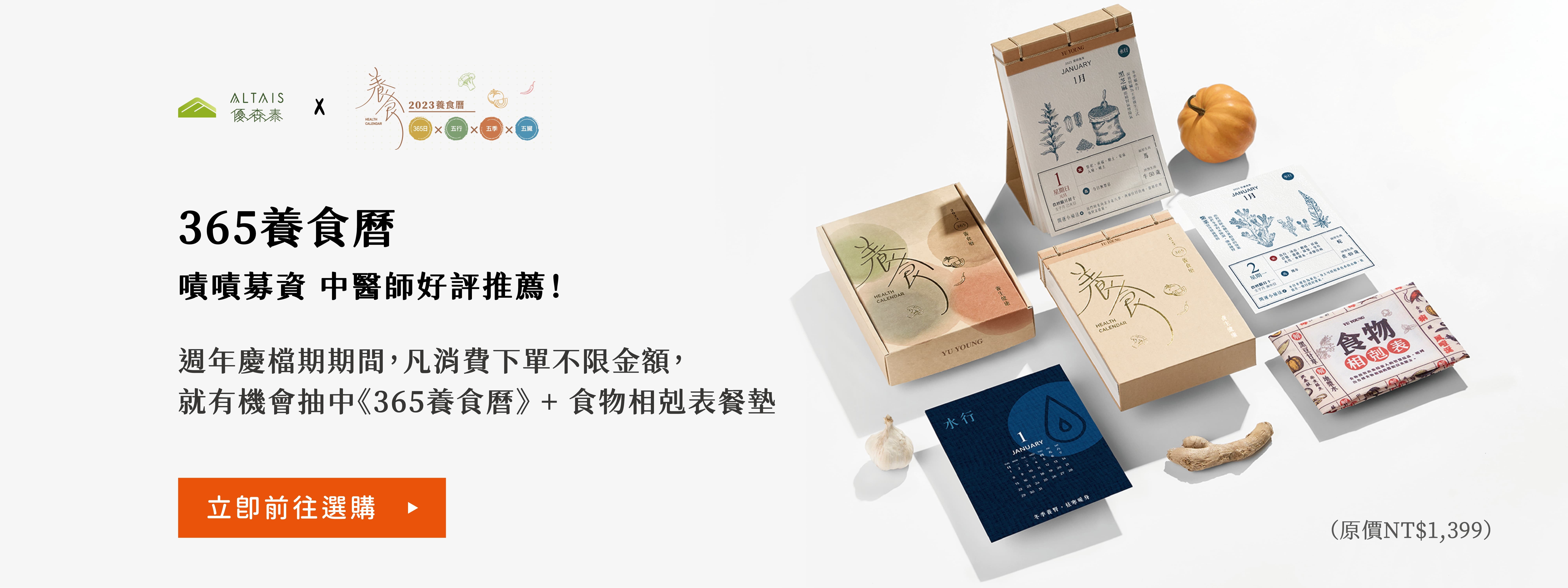 凡消費下單不限金額,就有機會抽中最新質感精緻手繪2023年《365養食曆》 + 食物相剋表餐墊(定價NT$1,399)。