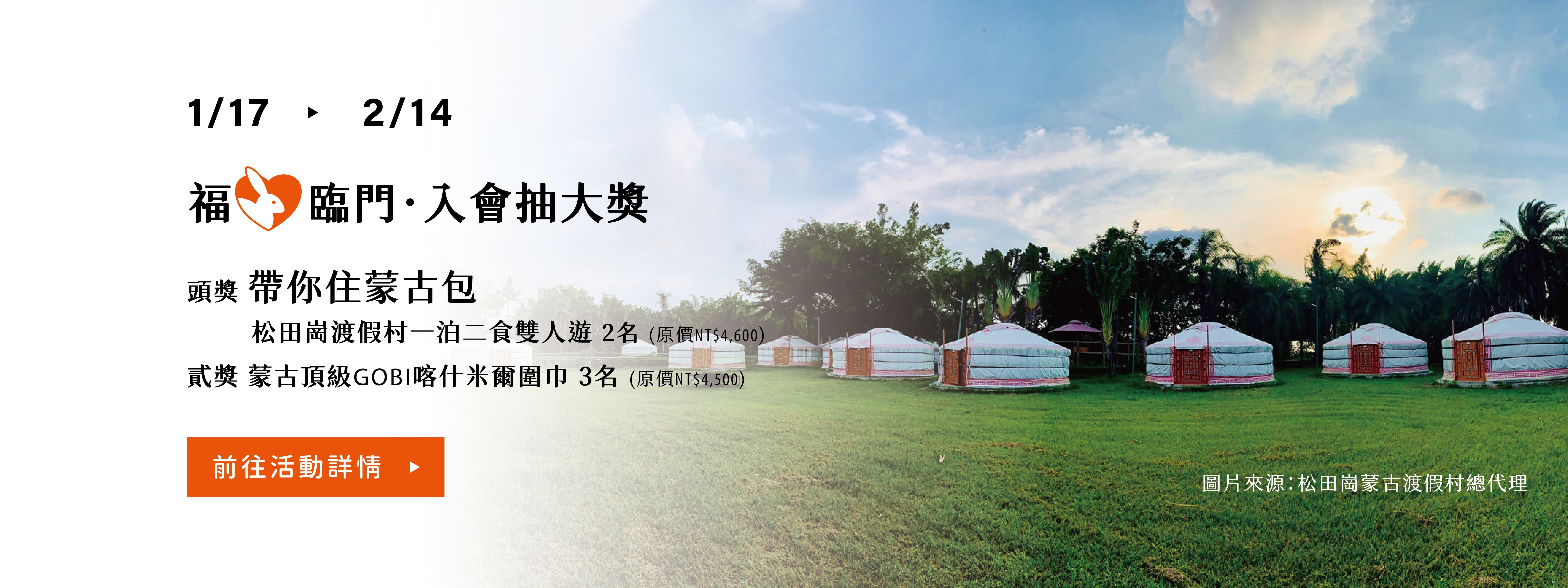 抽獎資格:1/17-2/14 期間註冊官網新會員