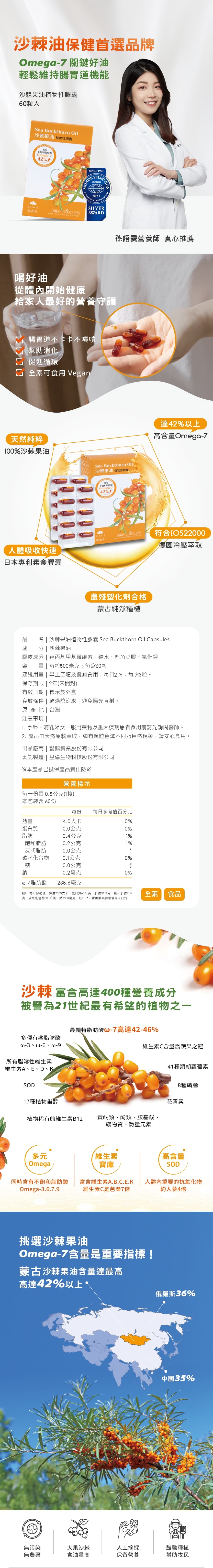 ✔ Omega-7達42%以上,富含β胡蘿蔔素與多種維生素