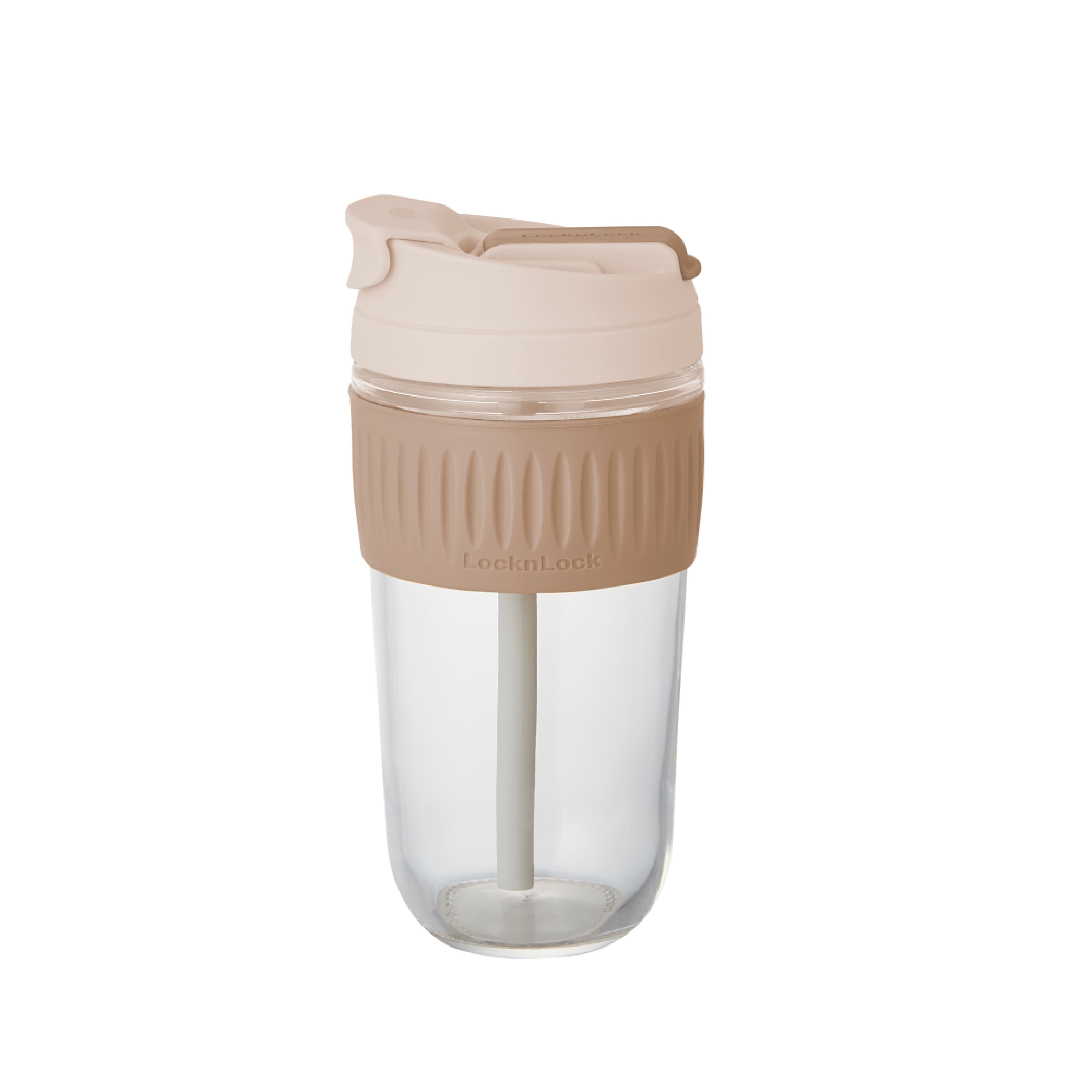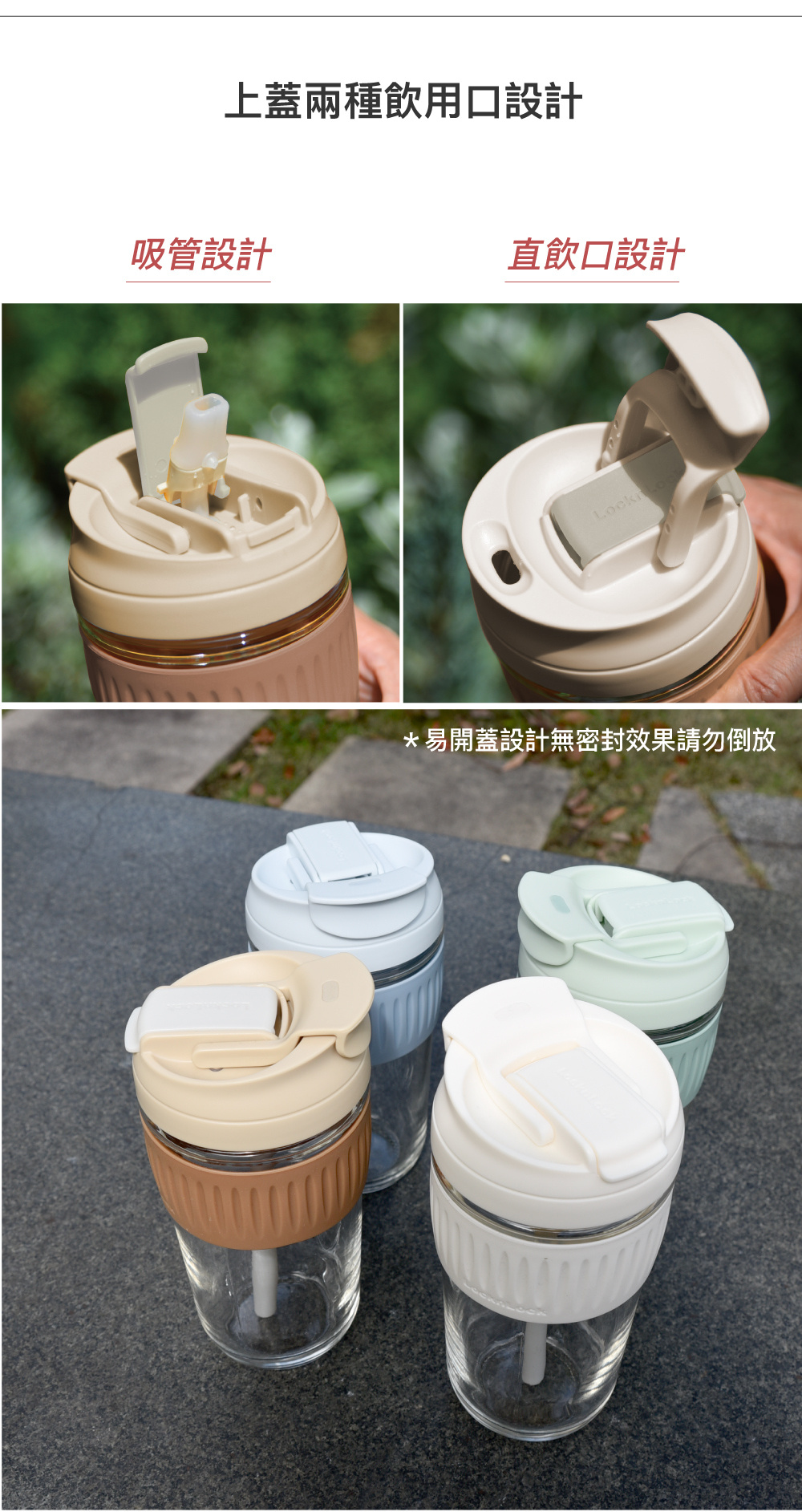 樂扣樂扣清新彈蓋耐熱玻璃兩用隨行杯 奶茶色/深粉色