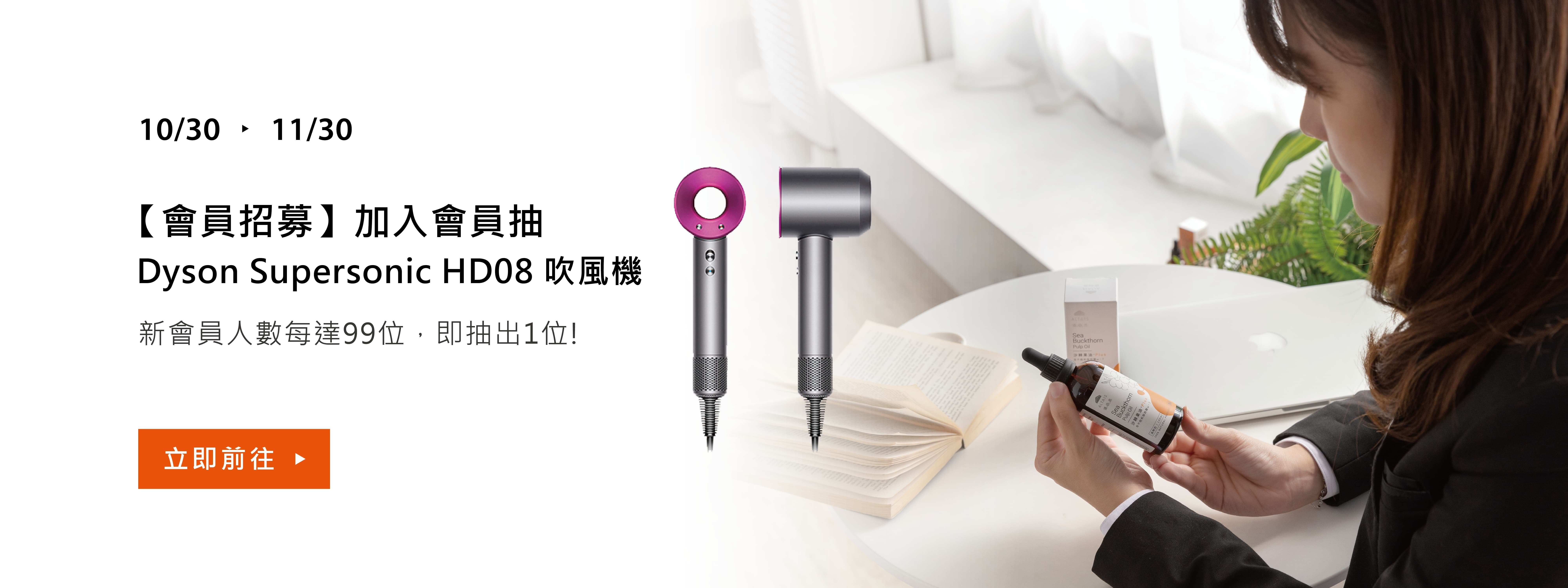 加入優森泰官網會員,就抽【Dyson Supersonic HD08 溫控負離子吹風機】(市價NT$16,600)