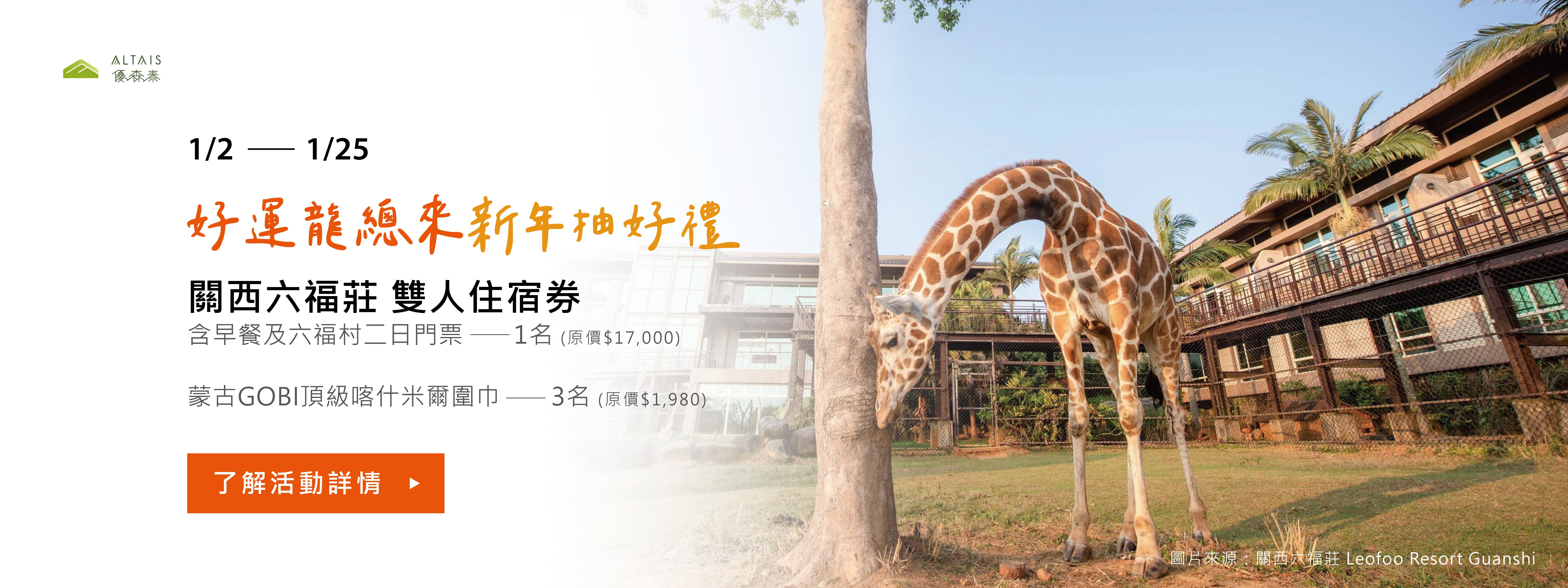 就有機會獲得【關西六福莊 雙人住宿券】(市價NT$17,000) 或 【蒙古GOBI頂級喀什米爾圍巾】(原價NT$1,980)