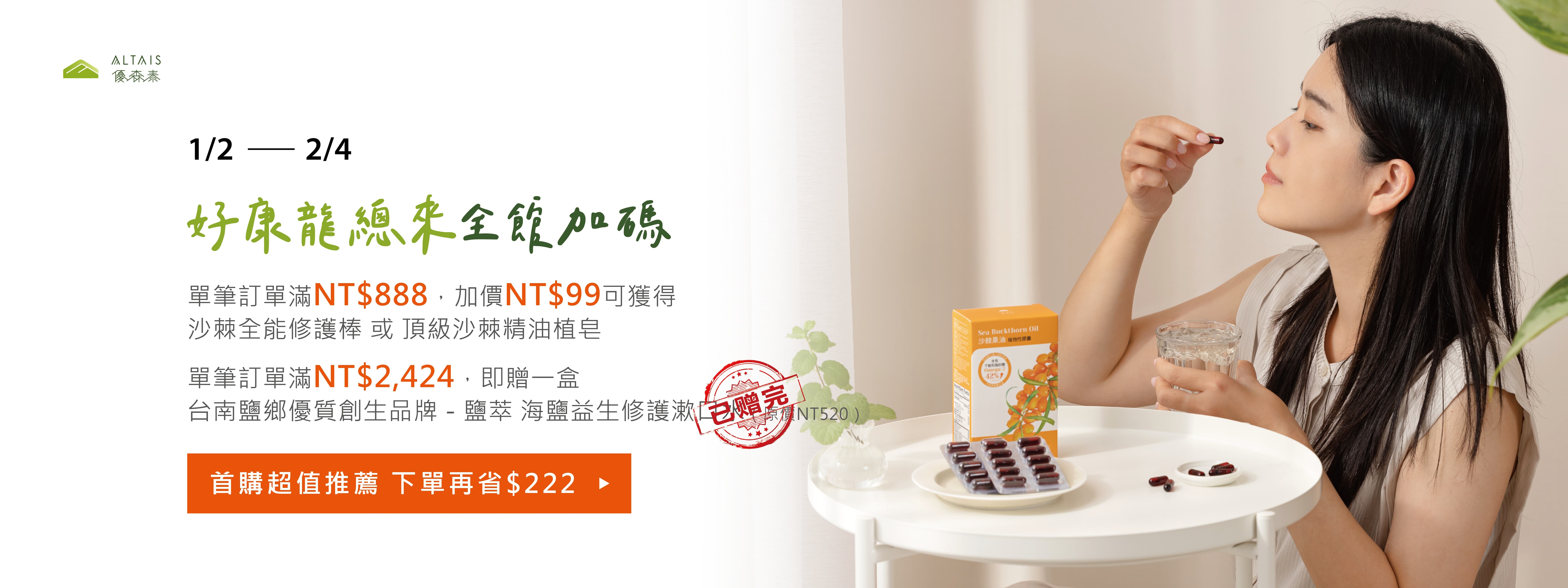 沙棘全能修護棒(原價NT$350)或 頂級沙棘精油植皂(原價NT$260)