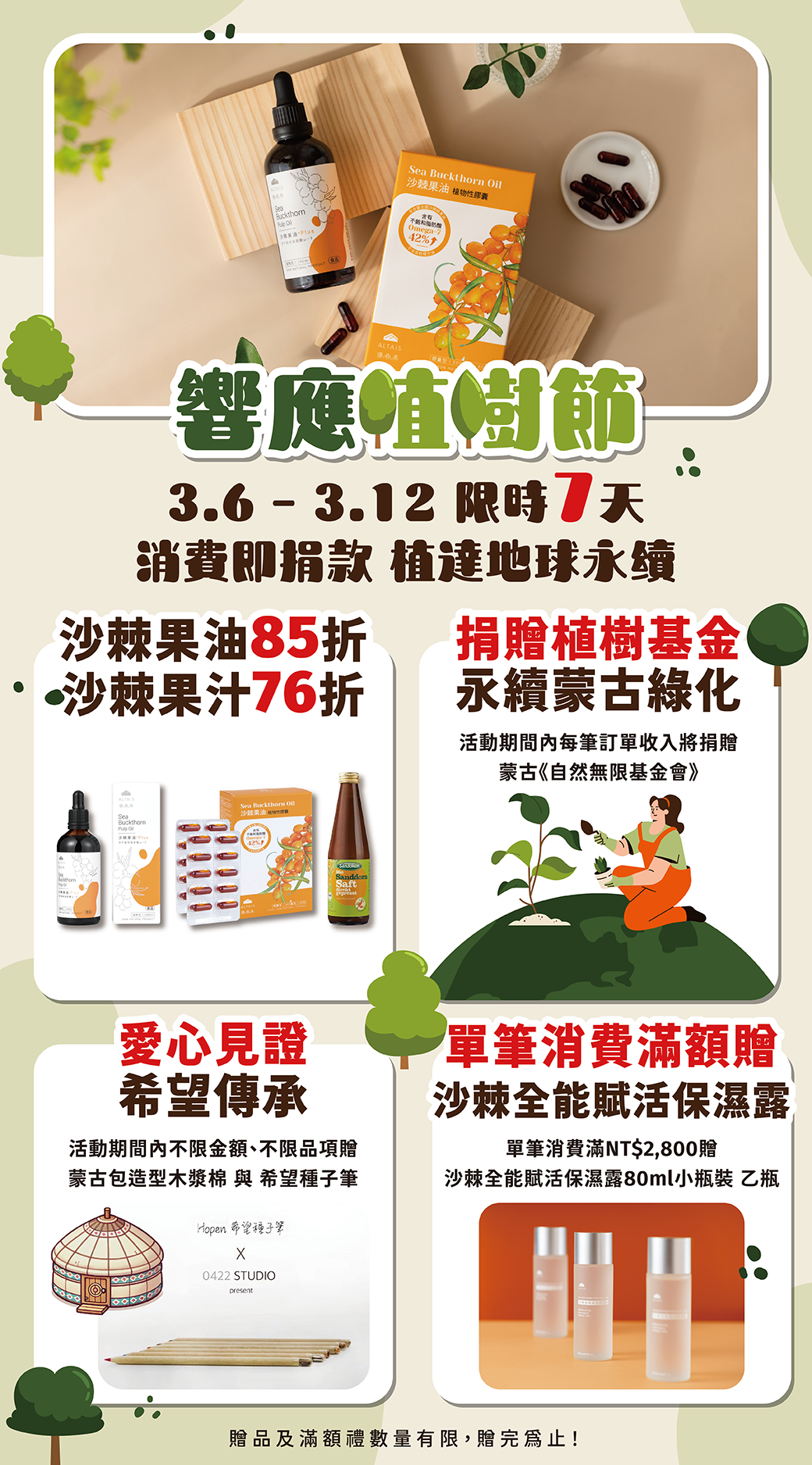 3/6-3/12 限時7天★組合優惠★ 沙棘果油系列85折、果汁76折