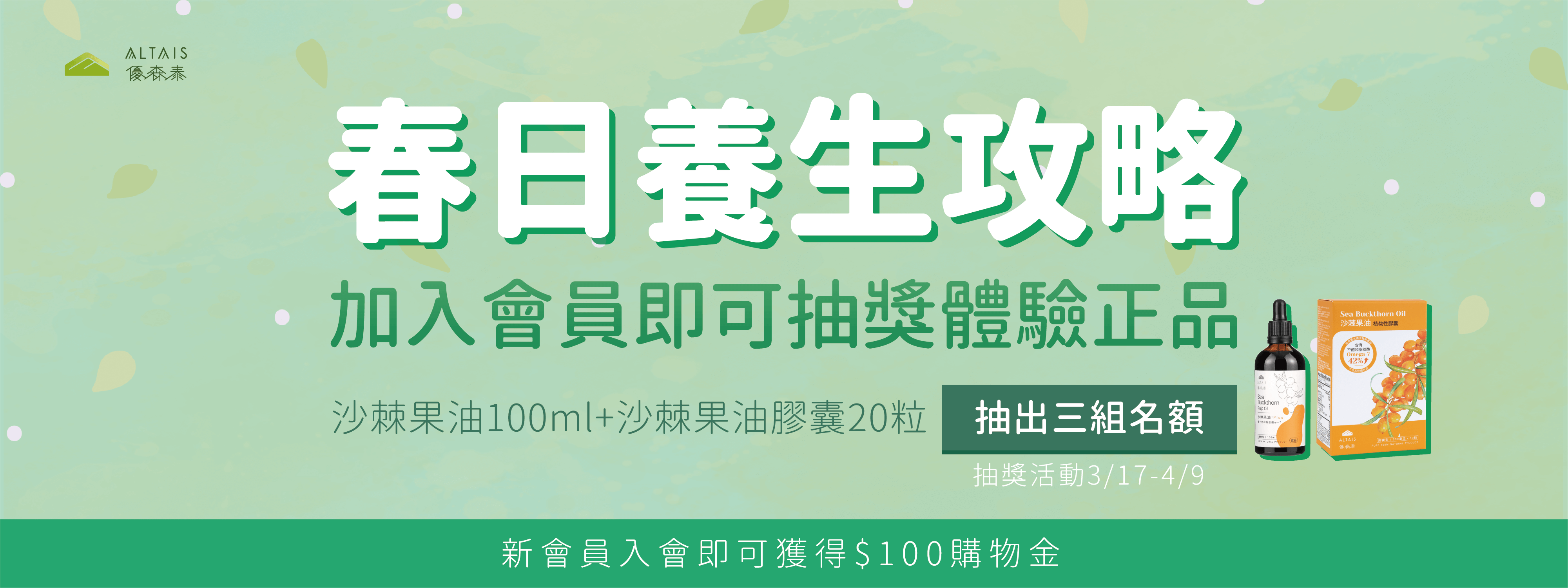 【入會抽獎】 養生攻略 首嘗沙棘果油3/17-4/9