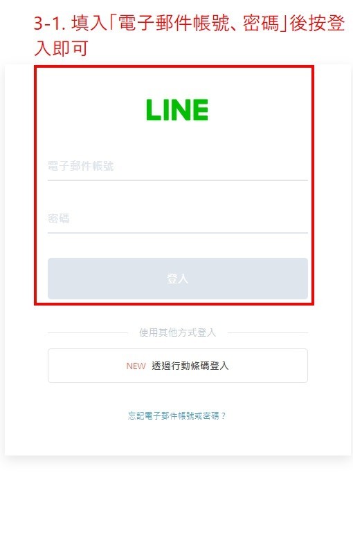 3-1. 填入「電子郵件帳號」、「密碼」後即可登入