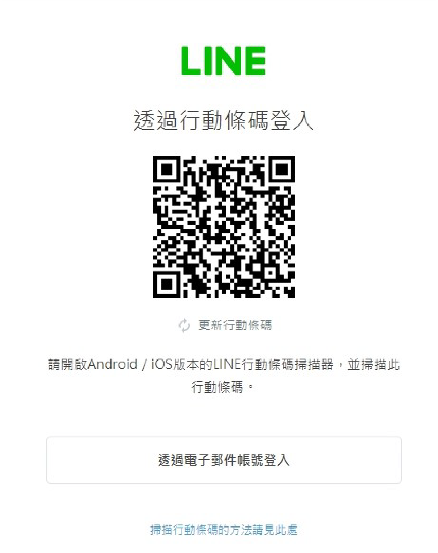 點選「透過行動條碼登入」,會跳出QRcode,掃描即可登入