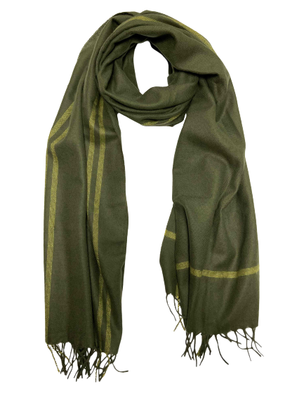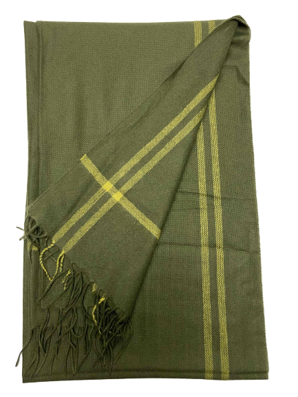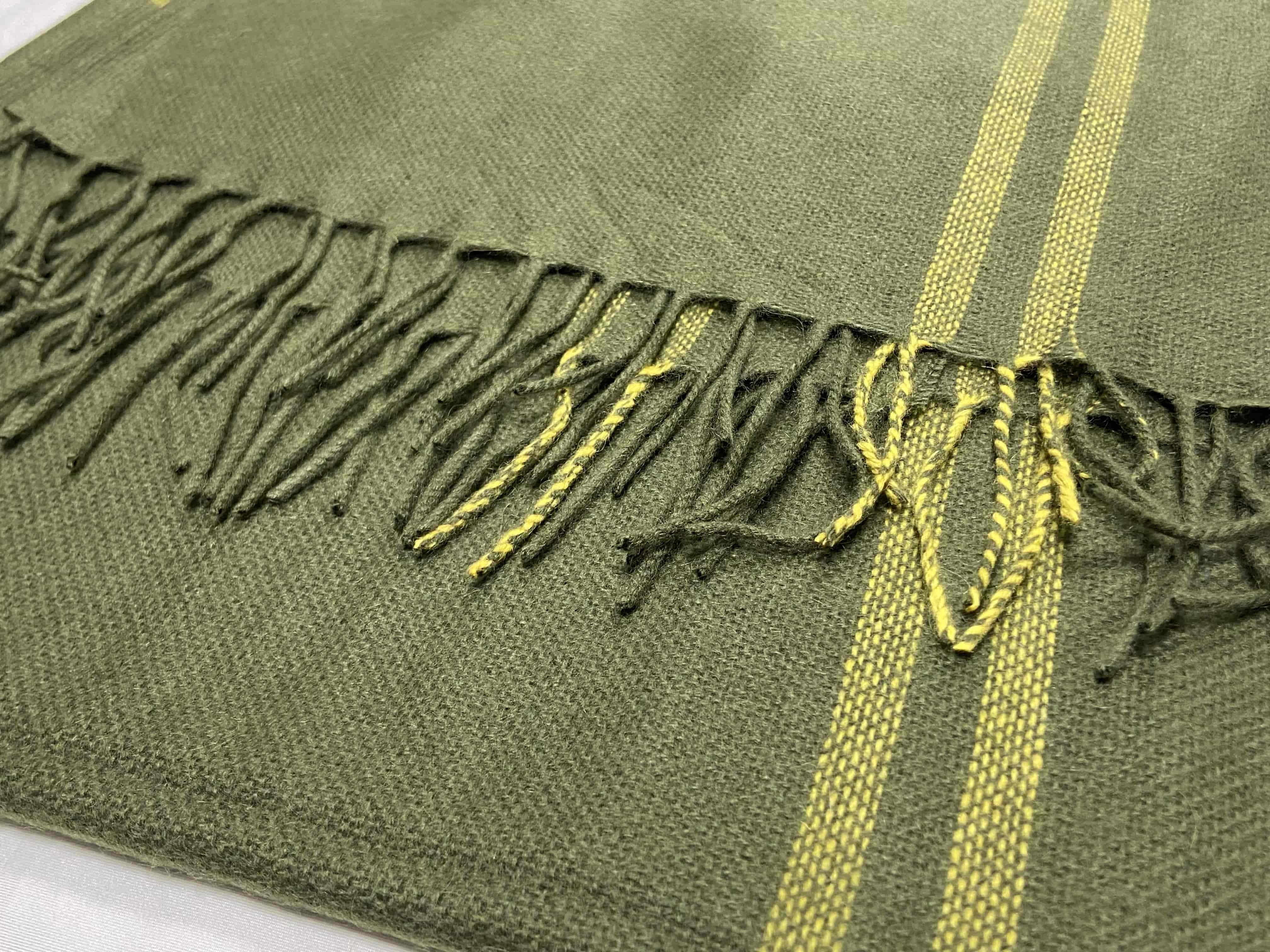 【喀什米爾圍巾】親膚氣質草綠黃條紋圍巾#C2|保暖圍巾|優森泰ALTAIS