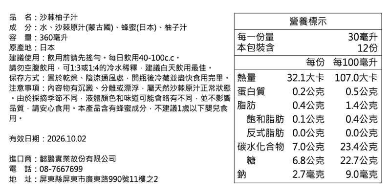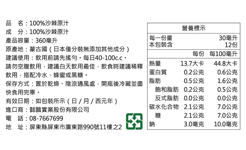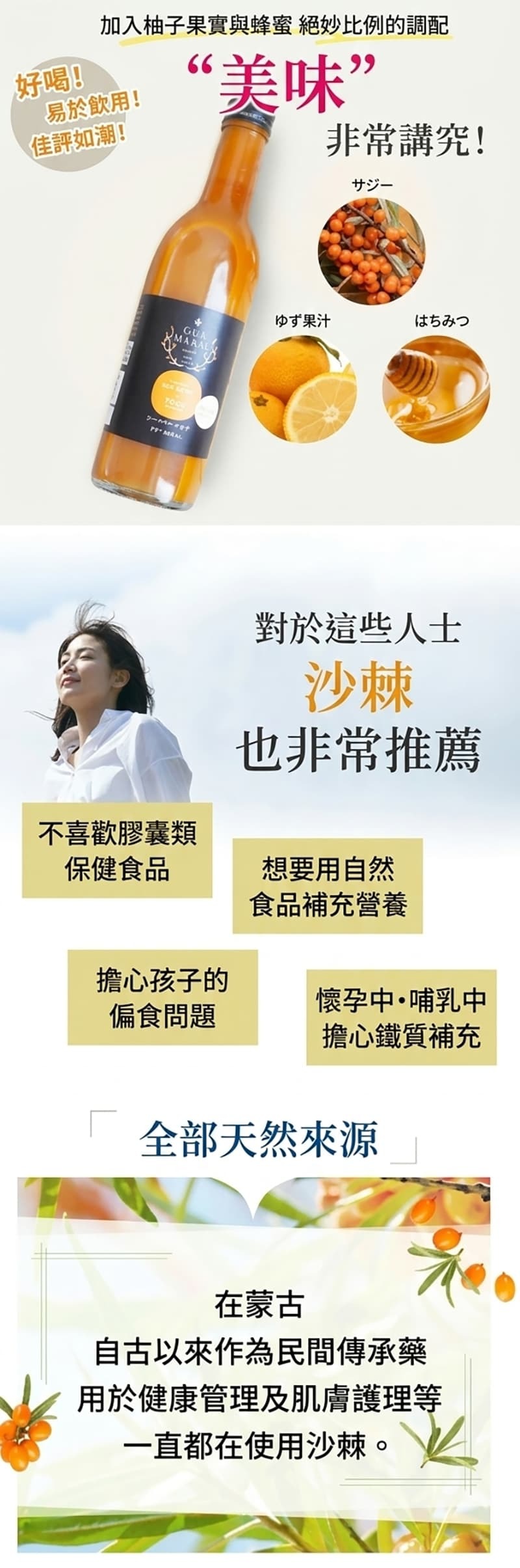 2. 若有些微漂浮物,為沙棘本身果肉營養,請安心飲用。